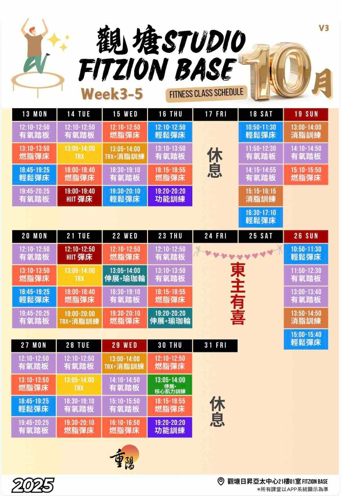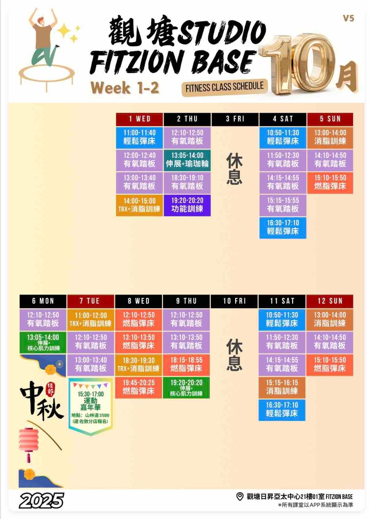 中環10月下旬運動時間表